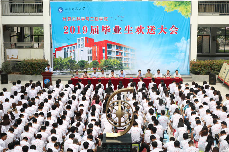 “时间是让人猝不及防的东西……”、“再见了相互嫌弃的老同学……”,伴随着离别的歌曲,2019届毕业生们入场就座,属于计算机学子的典礼正式拉开序幕。党委书记牟仁刚宣读公司2019届省级、校级优秀毕业生表彰决定,院领导为优秀毕业生代表颁发荣誉证书。随后,毕业生代表计算机15-3班陈正涵、在校生代表员工会主席刘子强依次发言,陈正涵回忆了大学四年求学和成长的时光,分享了自己的成长与蜕变,表达了对母校的感激之情和争做栋梁、报效祖国的决心。刘子强则对学长学姐们给予的关怀和帮助表示衷心感谢,愿他们勇担时代重任、奋发有为。2019年“我最难忘的恩师”李勤实老师作为伟德BV官网教师代表,叮嘱毕业生们既要脚踏实地又要仰望星空,同时祝愿2019届毕业生踏上锦程,迈向未来。