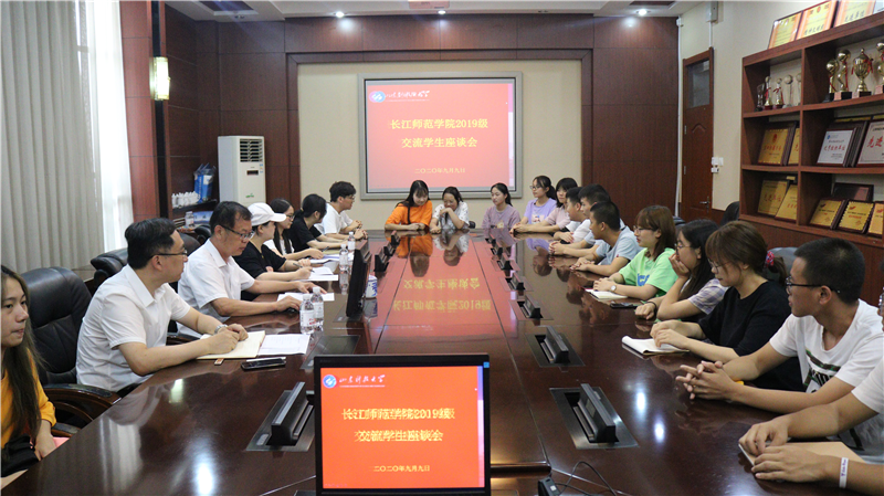 9月9日15:00,伟德BV官网于220会议室召开长江师范公司2019级交流学座谈会。经理梁永全,党委副书记、副经理郝亮,长江师范公司负责老师王雯,以及18名长江师范公司交流生参加了本次座谈会。会议由辅导员张玉莹主持。
