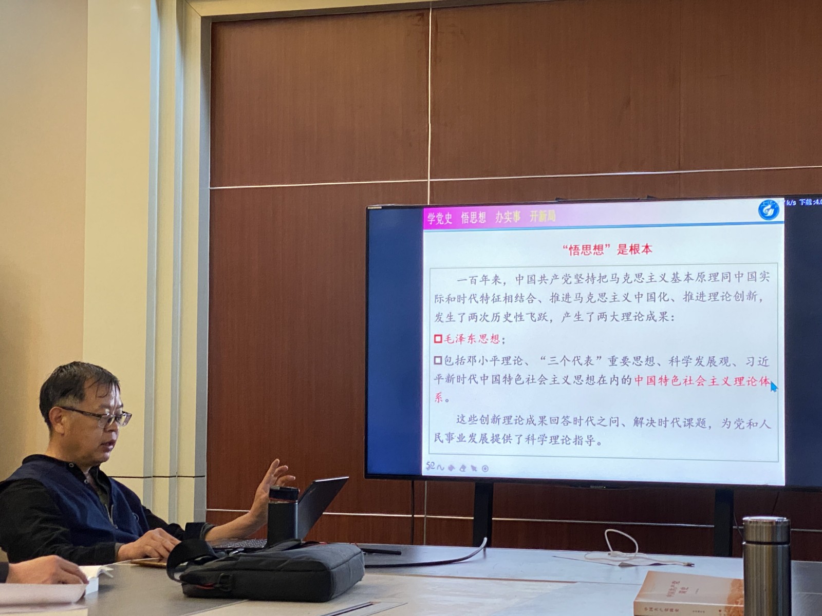 接下来,梁永全同志指出,近代以来,中国人民面临着争取民族独立、人民解放和实现国家富强、人民幸福这两大历史任务,团结带领全国各族人民为完成这两大历史任务而不懈奋斗,这是党的历史发展的主题主线;“党的不懈奋斗史、理论探索史、自身建设史、初心使命史、政治锻造史”这“五史”的融通和统一构成党的历史发展的主流本质,而“为人民谋幸福、为民族谋复兴、为世界谋大同”则是党史的主流,“为人民谋幸福、为民族谋复兴、为世界谋大同”是习近平新时代中国特色社会主义思想的价值取向、使命担当、格局境界的集中体现。